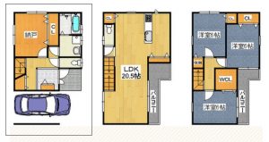 木造3階建て 駐車スペースあり