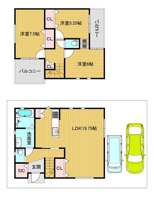 - 土地面積:96.79㎡(29.2坪)・102.54㎡(31坪)